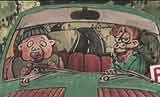 youths go for a joyride in their new car, seeking their first road-kill. Things