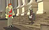 | Made in 24 hours for the Launceston "Take That" short film festival, in which the film was required to include the following elements: - a lollipop (provided) - set in Launceston in the year 2058 - one specific genre selection (comedy) - the word "quintessential" - the Launceston City Council Town Hall steps - G rated restriction The competition began at 9:00 am 12th January 2008. We shot the Town Hall steps first, arriving home at 9:45am. Storyboards and script were completed by noon. Sound narration recorded by 12:30pm. Puppets drawn, coloured and cut out throughout the afternoon and night, until 2:00am. Filming commenced & was completed at 5:30am. Edited until 8:00am. Music and foley was added until 8:35am. Film was then rendered and submitted before the deadline. (phew!!) ... It was a very close call for us to finish. The first screening and awards ceremony was held at the Launceston School of Art at 2:00pm on the 13th.... and to our surprise our film was awarded first place! Thanks to the Launceston City Council, The Examiner & all the other entrants... all of the films were excellent & we were VERY impressed by the overall quality. The pressure created a lot of fine work that day... and it was certainly a marathon in our house! (lots of sports drinks and healthy food... but sleep was badly needed upon competition!) | ||