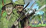 | Deep in the thick jungle of the Pacific theater of World War II, a group of Australian forces is sent on a mission to locate a missing regiment of British troops. The Japanese forces throw every one of their efficient resources at the Australians to hinder their mission. This includes transvestite ninja, bad breath and V2 Rockets made in Germany. The fighting gets dirty, the bayonets get wet, and all those corny lines from the 1970's war comics get a good dusting off !!! Based on the comic book story "We Almost Got Shot" published in 'Tales Too Twisted to Tell - Issue 2' and in Southern Aurora Comics "Australian War Stories" Anzac special edition in 1994. | ||